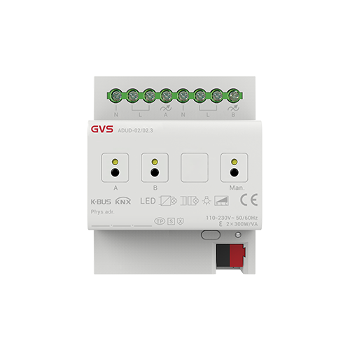 KNX Universal Dimming Actuator,1/2/4-Fold (hereinafter referred to as Dimmer) has 1/2/ 4 output channels, and it can connect with dimmable lamps (such as incandescent lamps, halogen lamps, energy-saving lamps, LED, etc.), and you can dim, preset scene, switch these lamps or other operations via the bus. In addition, as well as KNX Data Secure.
